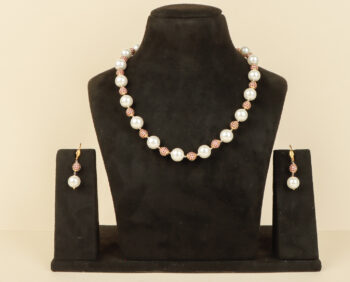 Silver and metal mix base rhodium polish necklace set with green stone setting.