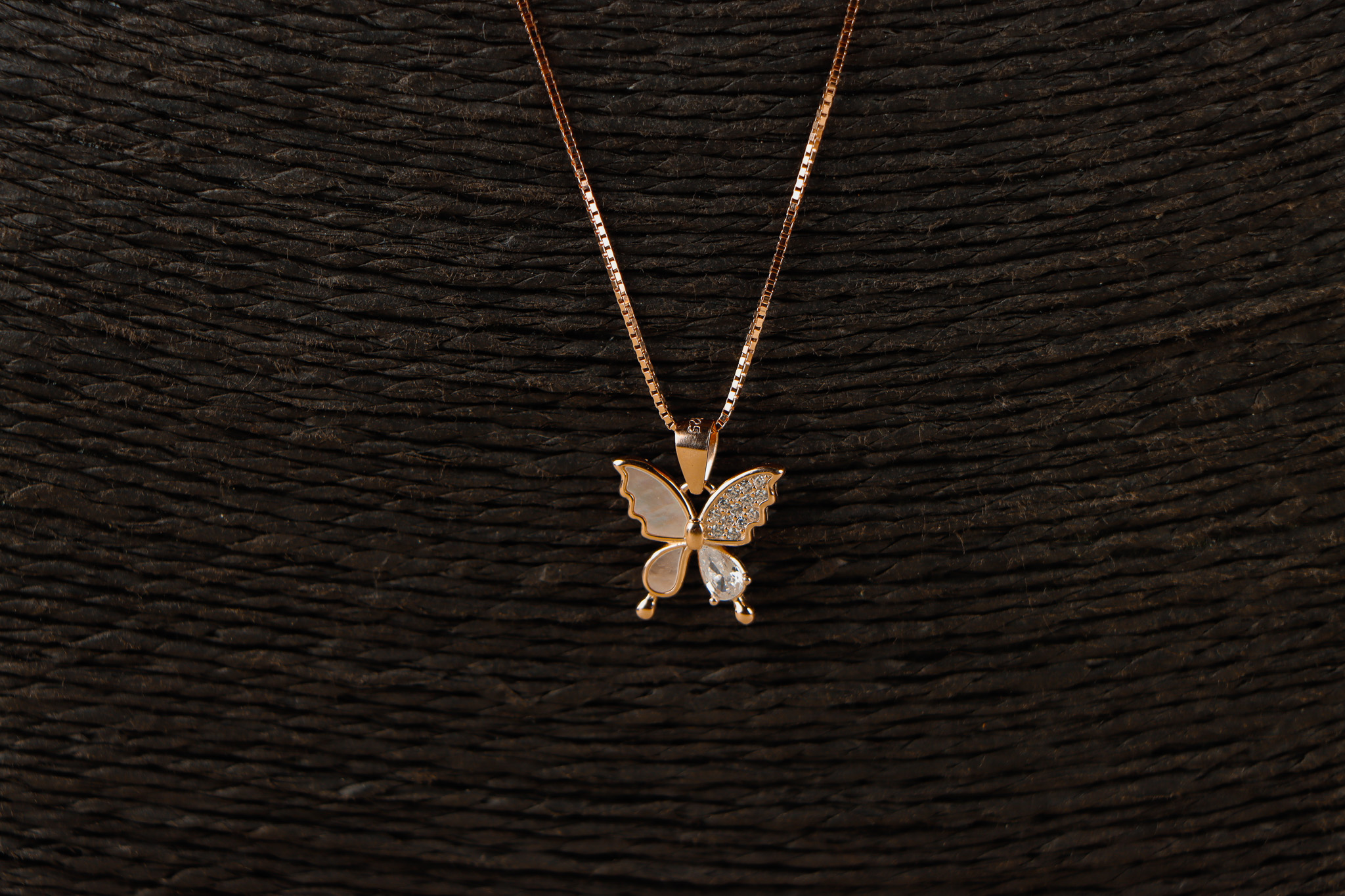 Pure Silver Mother of pearls Rose Gold Polish Pendant set with chain.