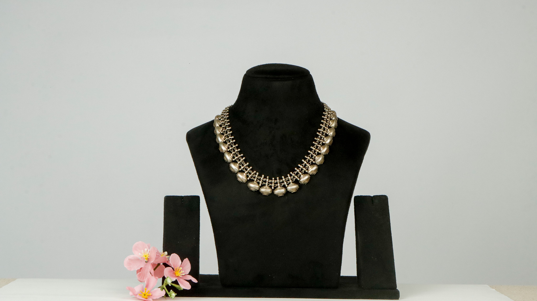 Pure silver base silver antique polish necklace .(without earring)