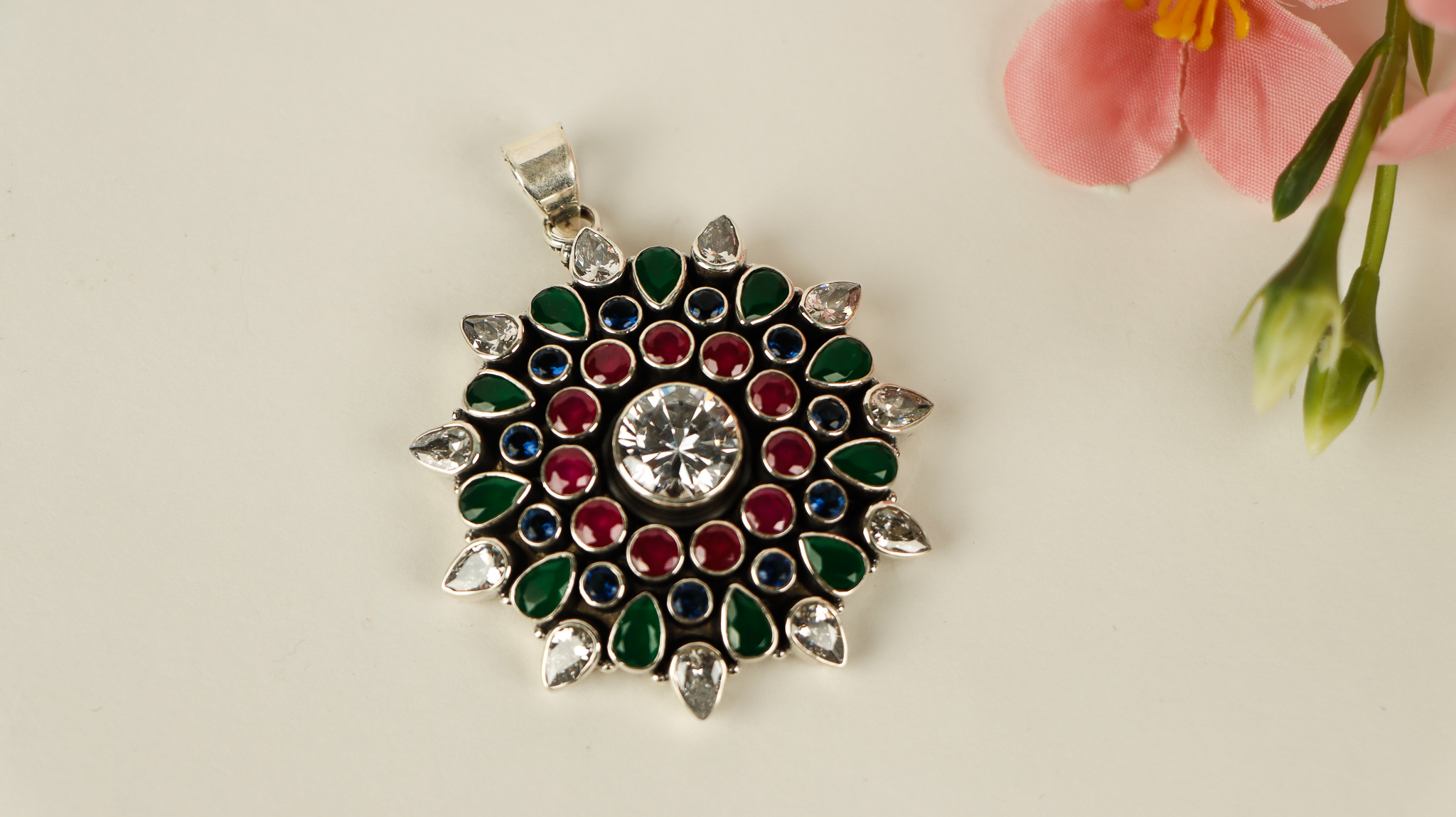 Pure silver only pendant with colour stone.