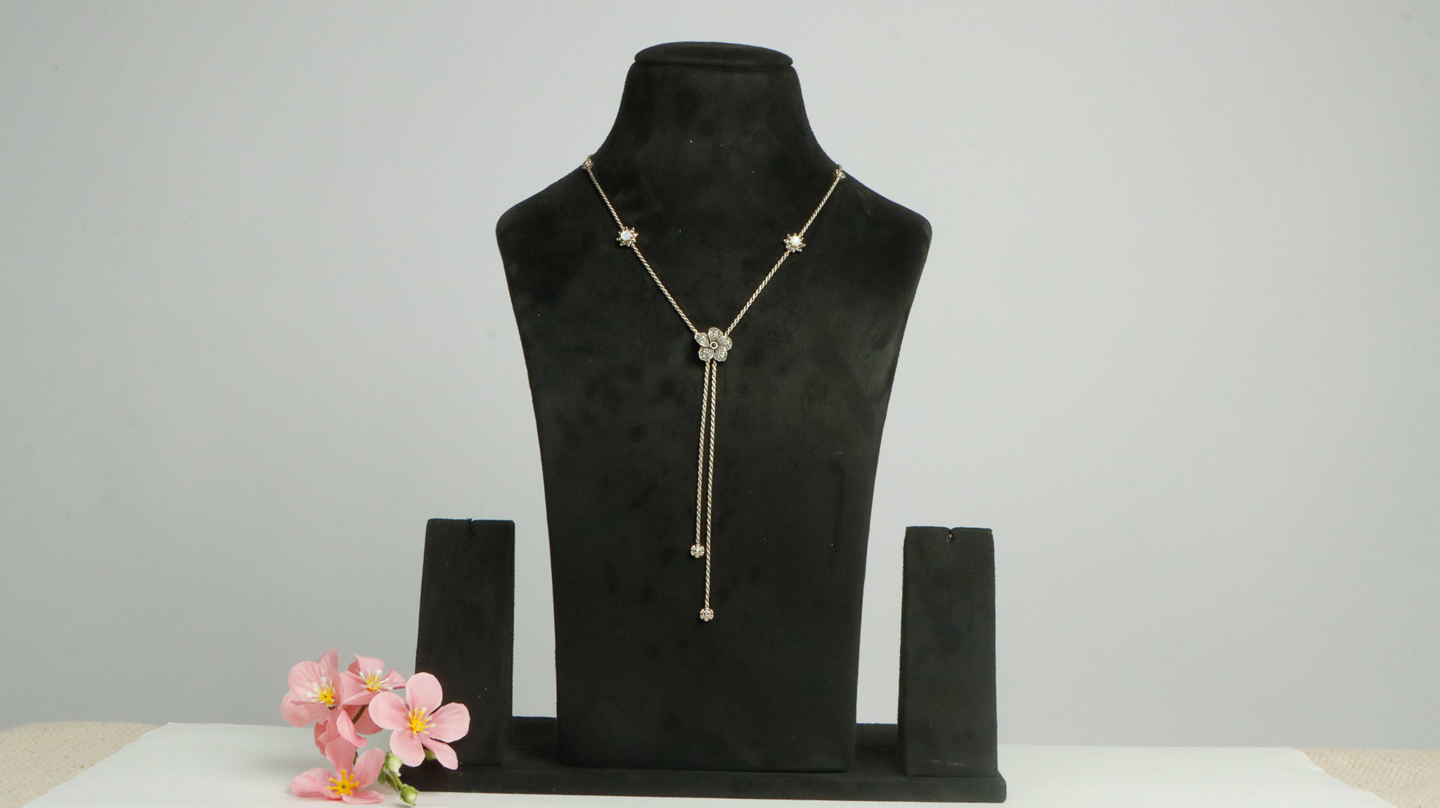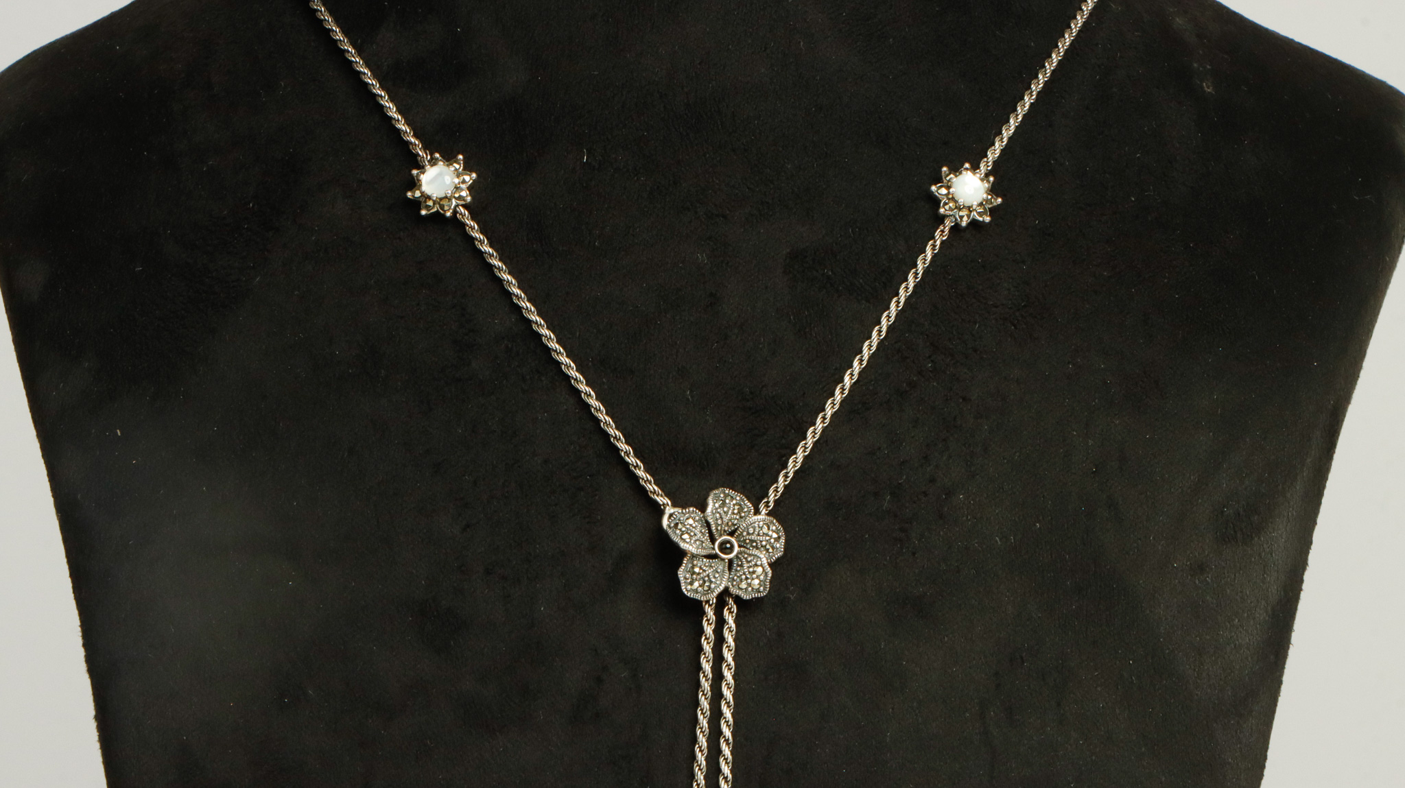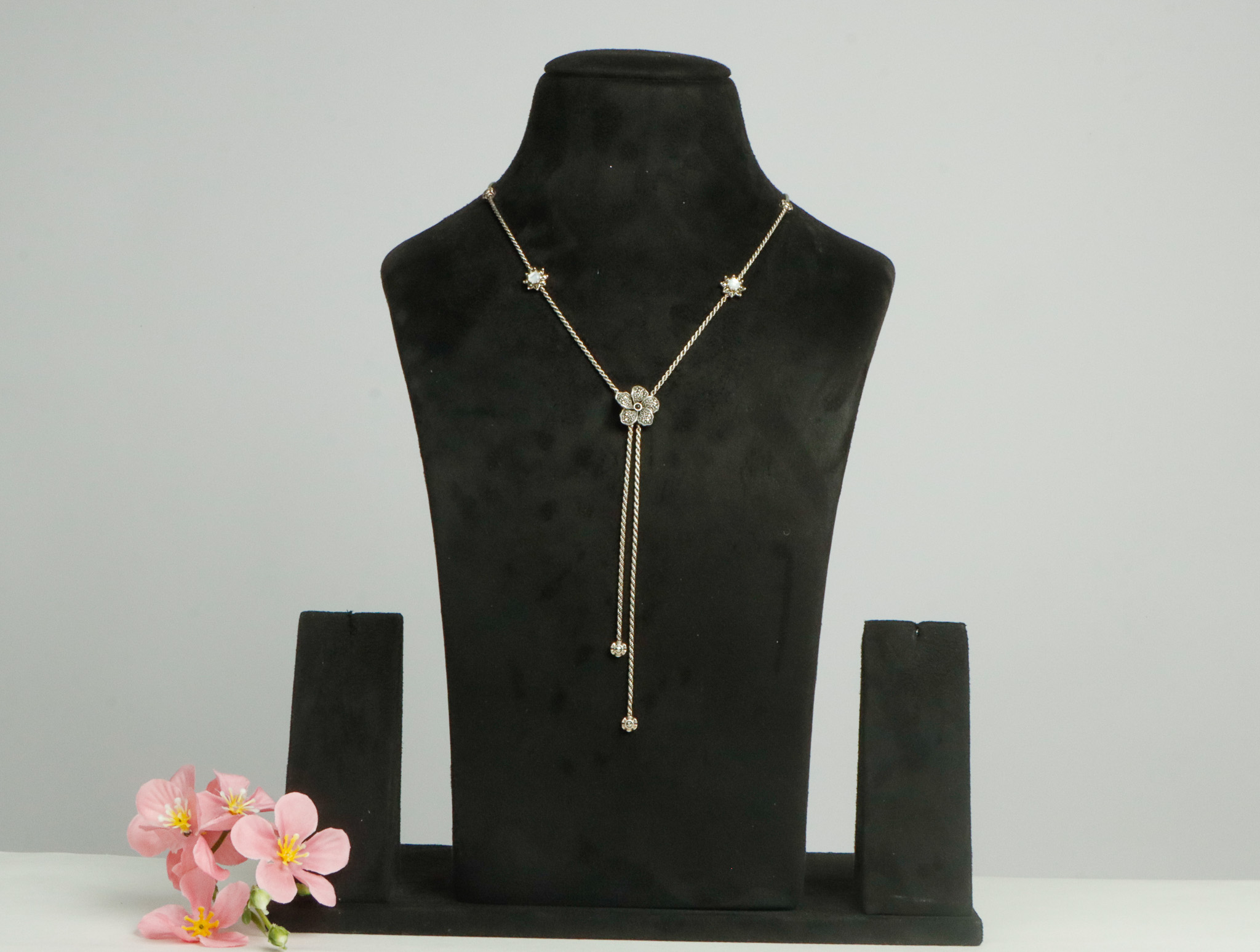 Pure silver chain with marka stone flower design pendant .(without earring)