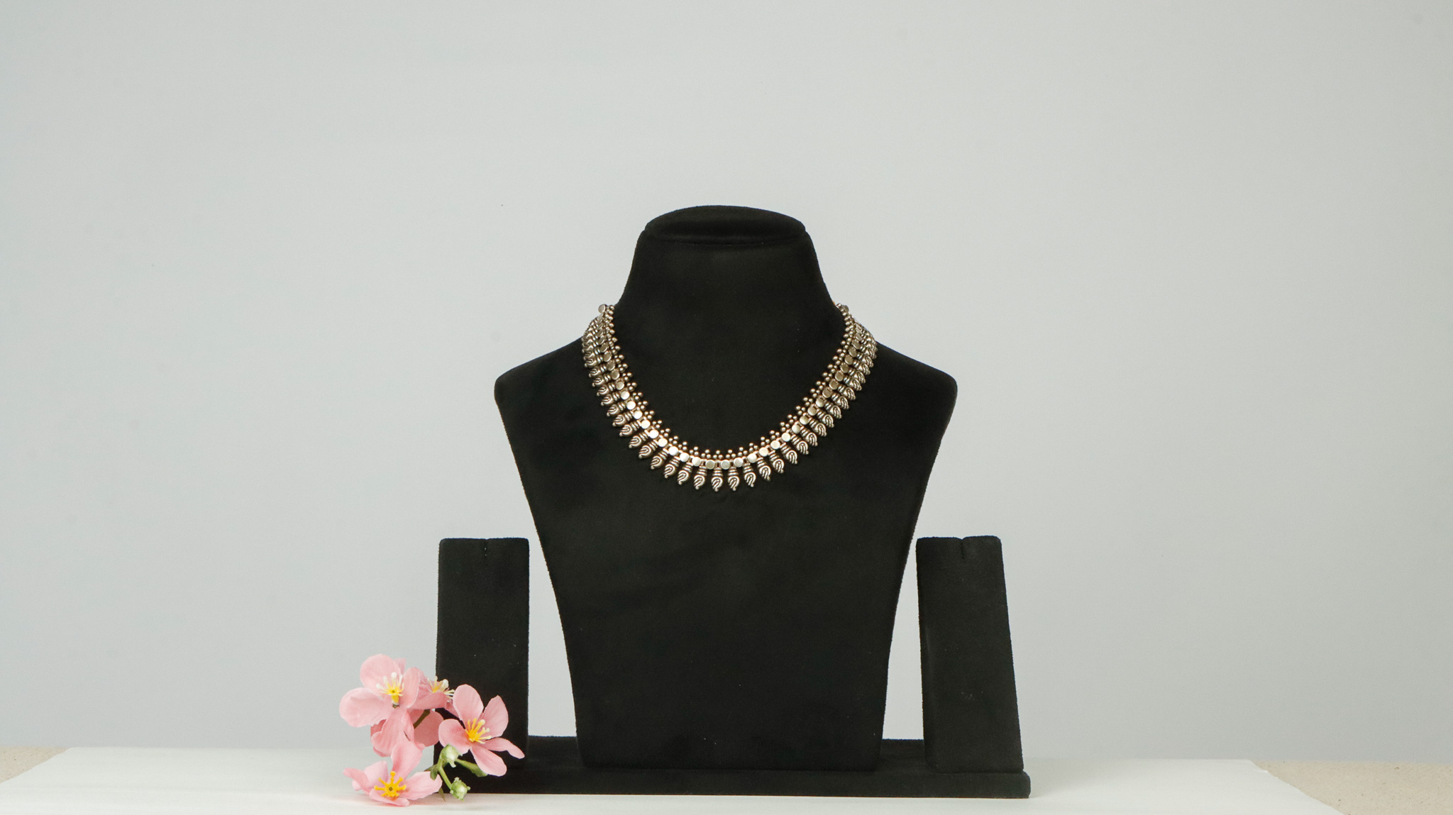 Pure silver base silver antique polish necklace (without earring)