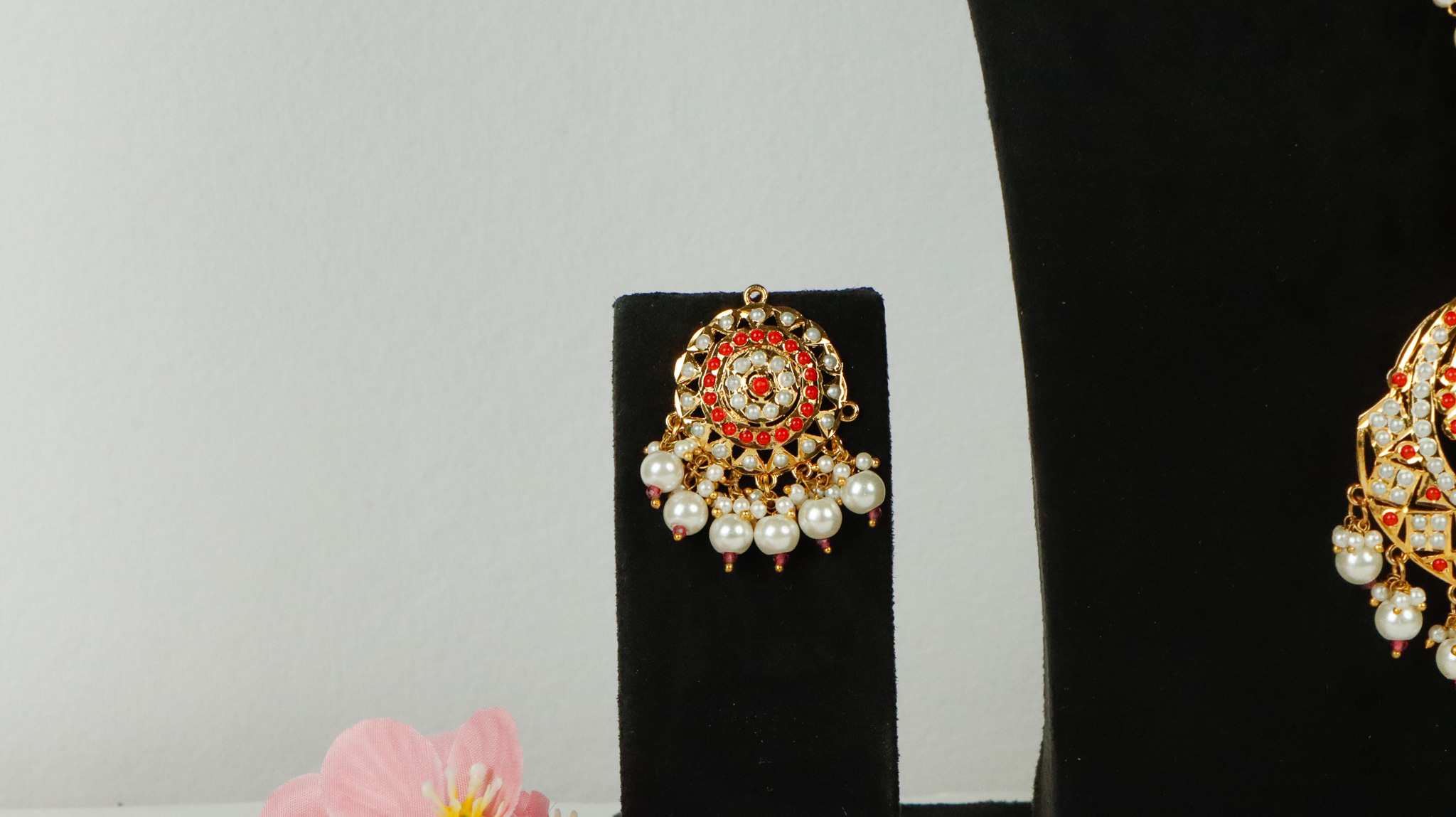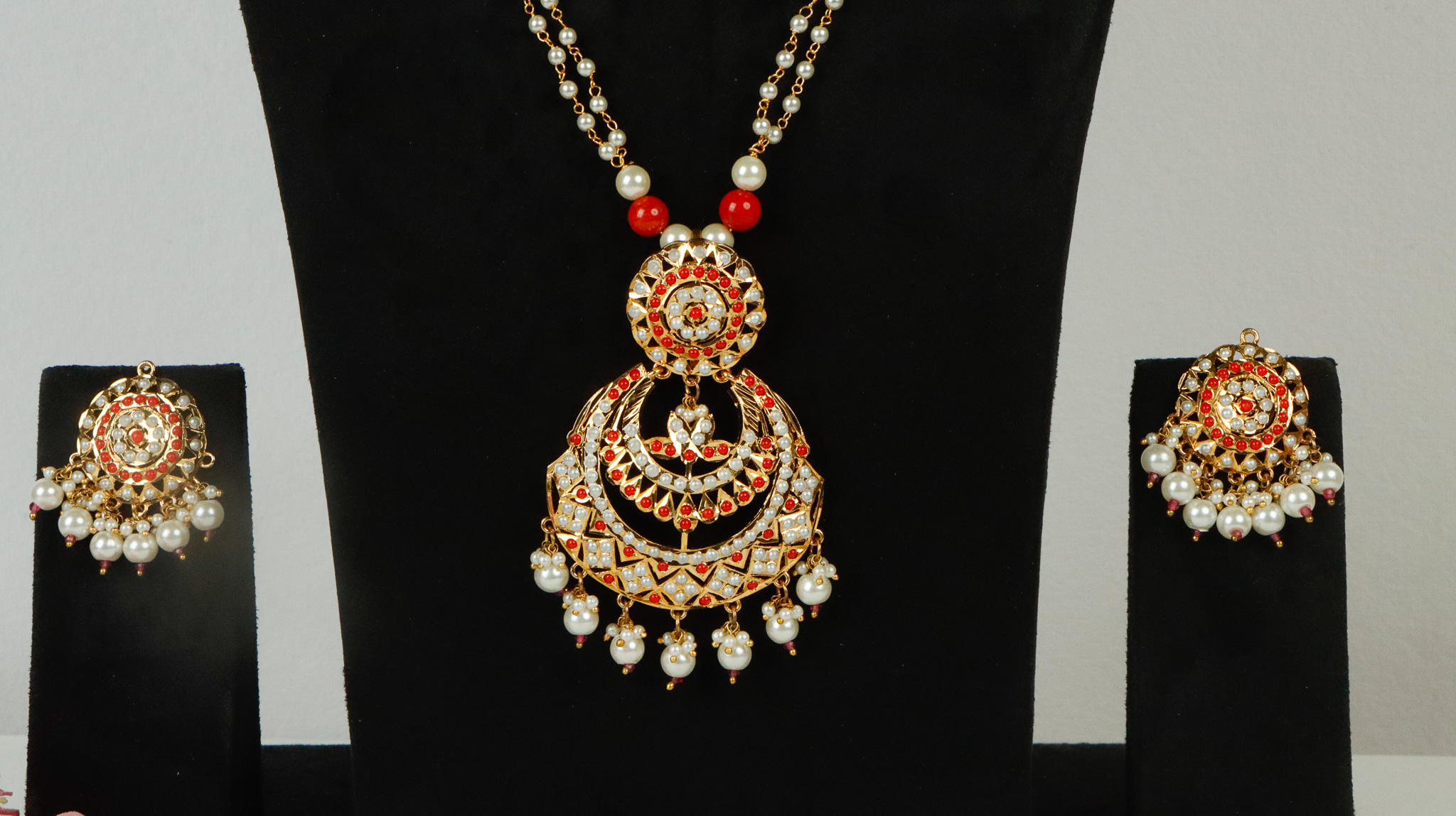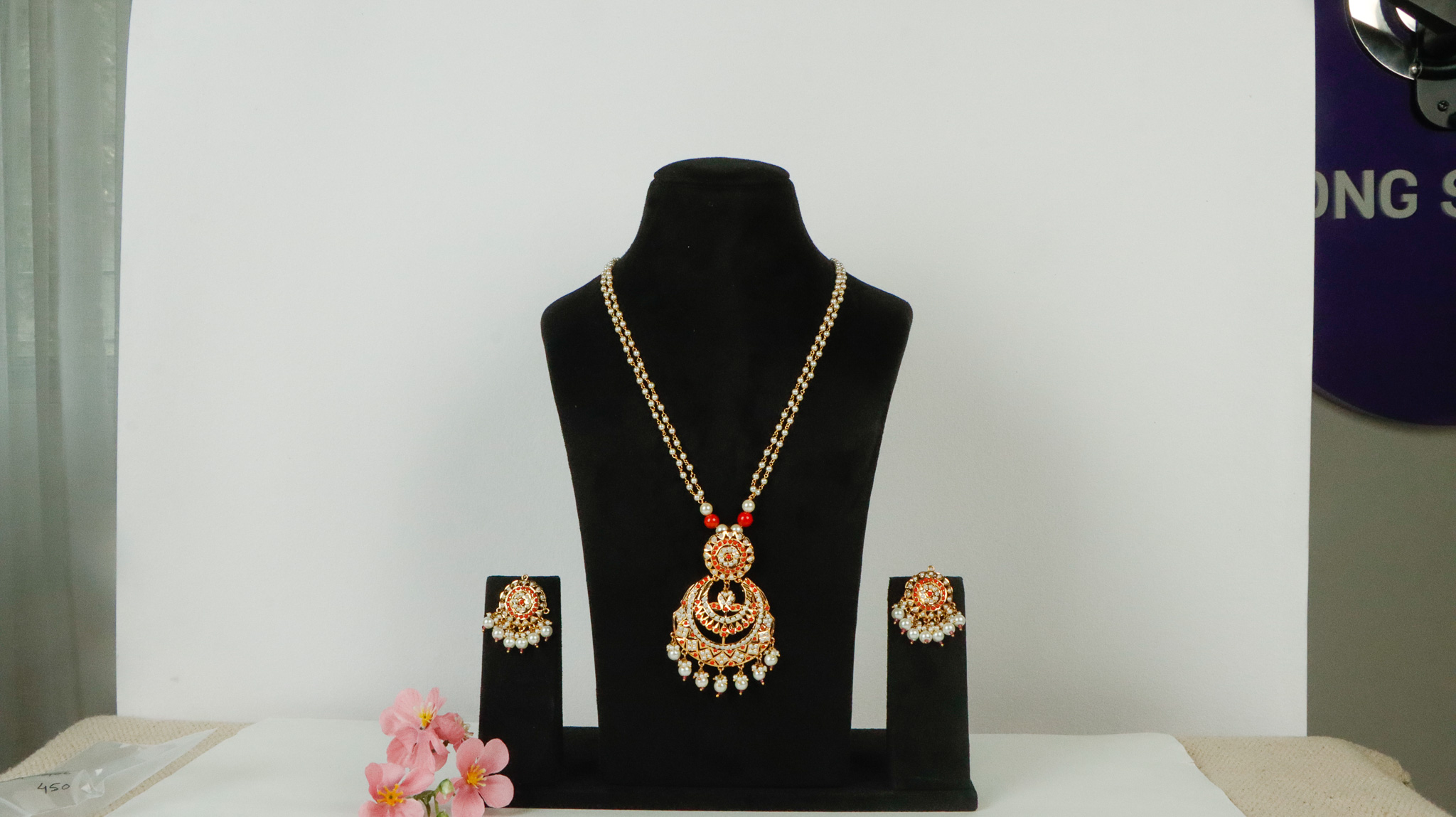 Silver and metal mix base golden polish pendant set with pearl tar mala.