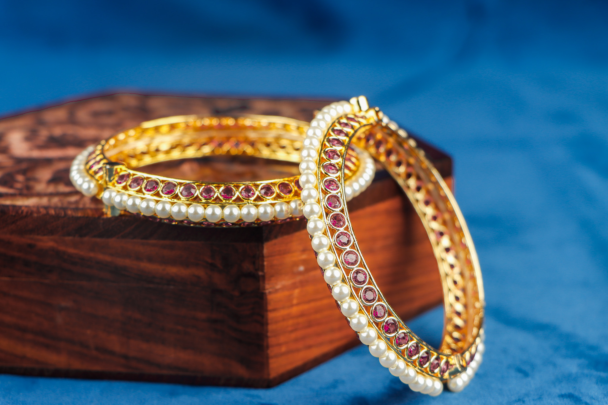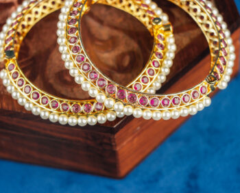 Silver metal mix base golden polish & pink colour stone with semi pearls .(size-2.6)