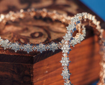 Pure silver base rose gold polish earring with AD stone setting.