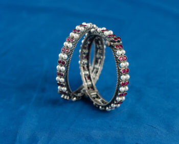 Silver mix base golden polish & pink stone with pearls .